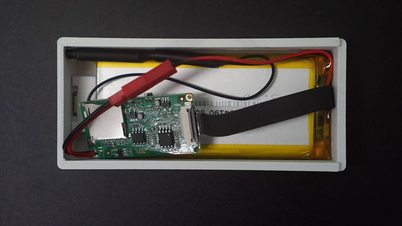 カメラ基盤とLiPoバッテリー 省スペース化